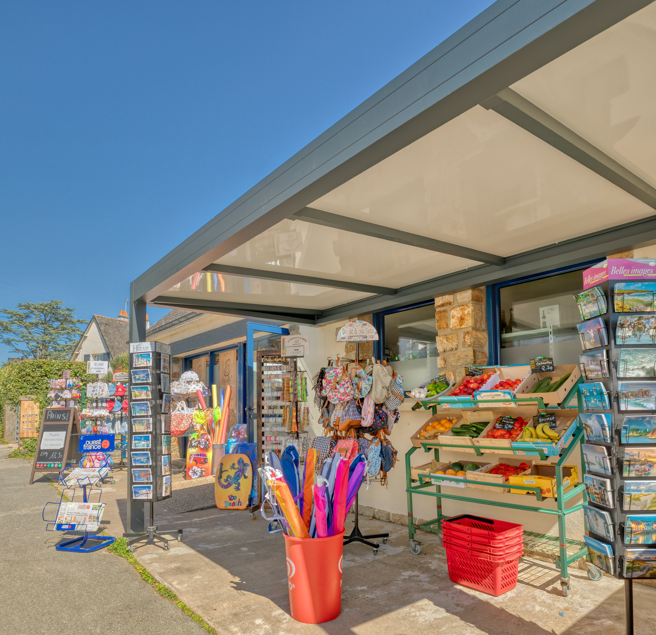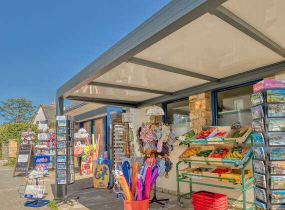 ' Our mini-market 'Le Filet à Provisions' welcomes you when the campsite opens. There you will find several kinds of special breads, baguettes, and pastries starting at 8 every morning, as well as everything necessary for your stay