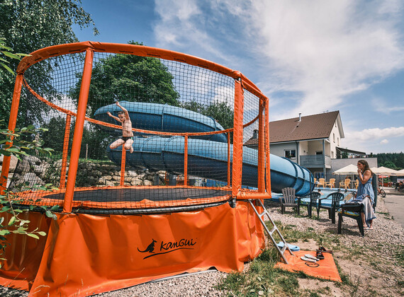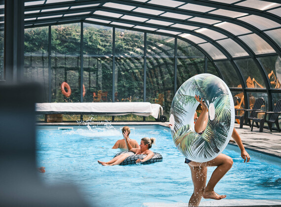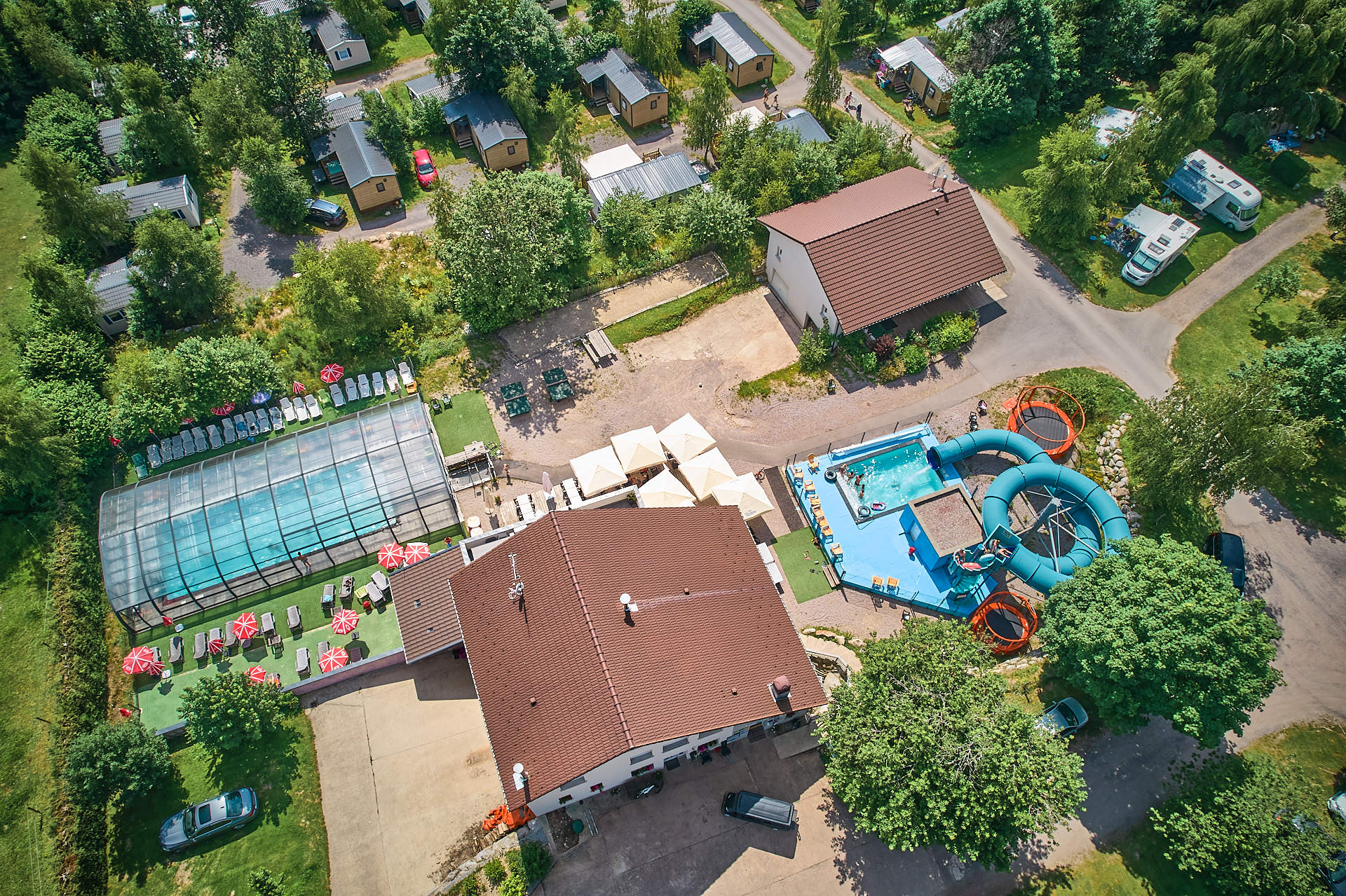The site has a heated indoor swimming pool, a waterslide open in July/August and small ponds, one for fishing and the other with water games. The area is very popular for hiking, mountain biking and lakes. Bar, restaurant and pizzeria are open throughout the season. Take advantage of our games room with TV and library, playground, football and volleyball pitch, bowling green, trampoline and table tennis tables.... You can also recharge your cars with our on-site electric charging points!