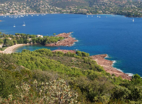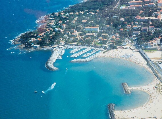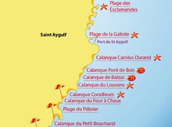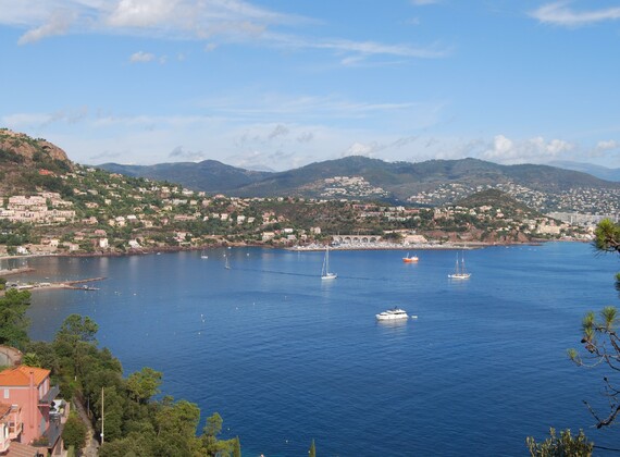 Saint-Aygulf, part of the Fréjus municipality, is a small, pleasant seaside resort with wide, sandy beaches to.wards Fréjus-Port and many small sandy and rocky beaches, westwards towards St. Tropez. This famous retreat of the jet set is at approx. 25 Km, less by sea when taking the regular boat service. Cannes, Antibes and Nice are all within 60 Km, add another 25 Km for Monaco. Don't miss the beautiful hinterland of the Var region, the Provence at its best! Just opposite the campsite's entrance is an acces road to the Etangs de Villepey, a small natural reserve, where footpaths along the ponds allow you to admire the specific fauna and flora of the area. There are also plenty of possibilities for cycling either towards the beaches or to the quieter plains of the Argens river. The Maures mountain range, commencing behind the camping site, as well as the Esterel mountains near Saint-Raphaël and the impressive rock formation of Roquebrune.