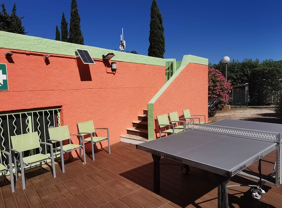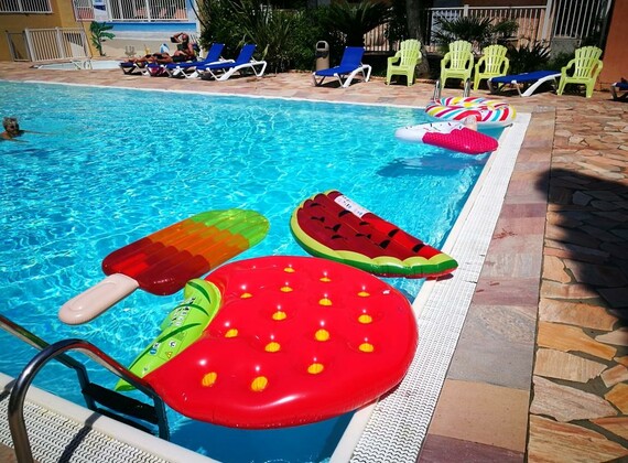 The pool,heated in for-and afterseason, and adjacent terrace form the lively center of the campsite .A comfortable lounge with TV is also at you disposal.If you are the sportsloving kind and like exercise you will find at the campsite a variety of activities in which you can participate. A good sized swimmingpool,an equipped open air fitness facility, a table-tennis area, volleyball and badminton space,table football and billards.And of course an area for playing the jeu de boules,so typical for the South of France and over the years extremely popular with our guests.