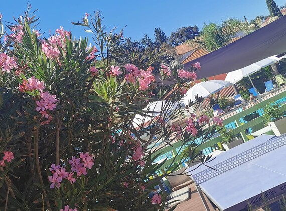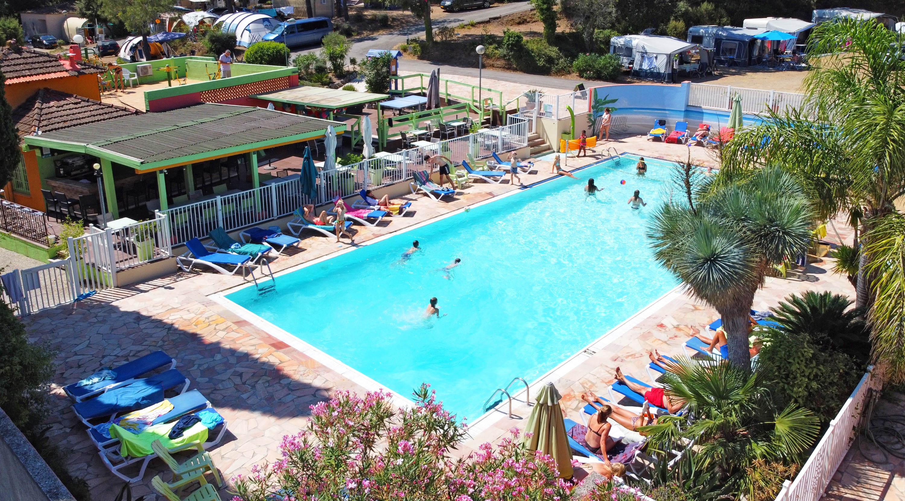 A genuine holiday ,a real vacation – is available to you at campsite LES LAURIERS ROSES (french for oleanders ) Les Lauriers Roses is a 4-star campsite, uniquely set in the midst of the characteristic mediterranean natural scenery,fully taking advantage of shadow spots dispensed by the majestic cork oaks and parasol pine trees, so very present all over the grounds.