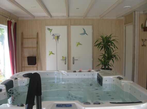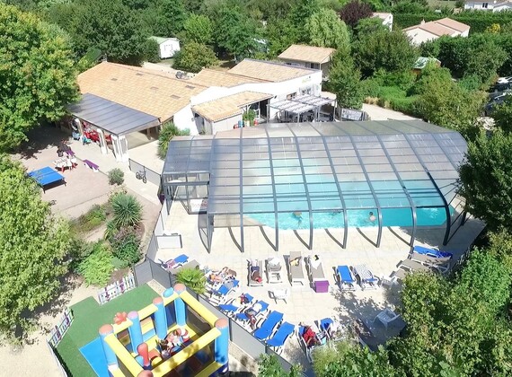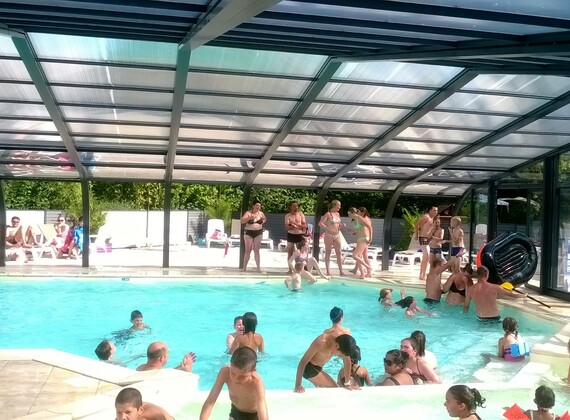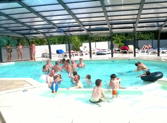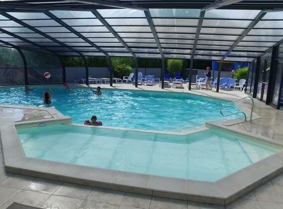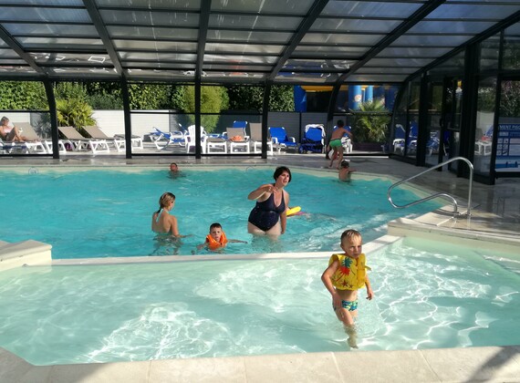 The covered and heated swimming pool and paddling pool with its large indoor and outdoor beaches are secured by a door that the little ones cannot open.